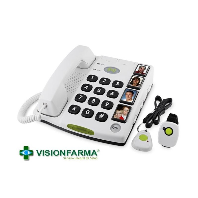 • Teléfono fácil de usar, mando a distancia, sonido alto y señal luminosa para personas mayores y con problemas de visión