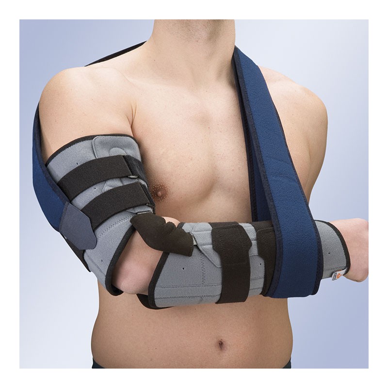 - La articulación con pletinas que van embutidas en tejido con microvelcro que nos permite adaptarnos a la longitud del miembro superior tratado