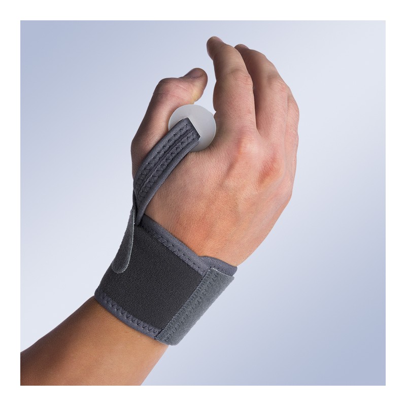 - Muñequera confeccionada en material transpirable que permite regular la compresión y la tracción ejercida sobre el pulgar en función de las necesidades de cada paciente