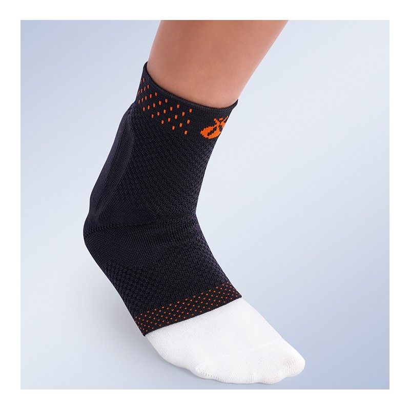 Tobillera elástica con almohadilla de silicona pensada para descargar el tendón de Aquiles.