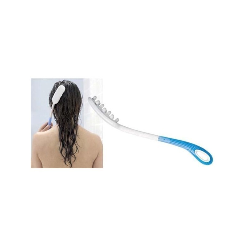 Cepillo con mango diseñado para facilitar el lavado del cabello. Sustituye los dedos al aplicar el champú y su diseño permite alcanzar toda la cabeza y realizar el masaje correspondiente.