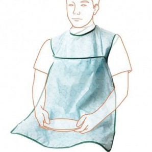 Este babero para adultos protege el cuerpo de alimentos y bebidas. Se caracteriza por ser ligero, resistente, impermeable, ancho, largo, fácil de cerrar (mediante botones por presión) y cómodo. Es el babero perfecto para comidas, manualidades, viajar o acciones de higiene bucal. Apto tanto para adultos como niños.