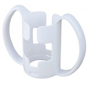 Portavasos de color blanco con doble asa de agarre para colocar vasos. Sus dos asas grandes son perfectas para mantenerlo en la posición correcta para beber.