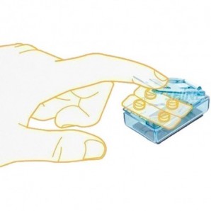 Su uso es sencillo, ya que basta con introducir el blíster del comprimido en el hueco indicado del dispensador medicamentos y apretar sobre él. Automáticamente, el film que mantiene al comprimido en su compartimento se rompe liberando la cápsula y dejándola caer en el recipiente. A continuación, deslice la tapa y ábrala para recuperar la píldora.