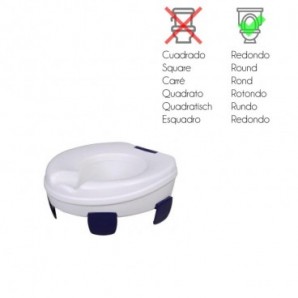 Su sistema de fijación, fácil y estable, da seguridad al usuario a la hora de usarlo ya que con los 4 clips evita que se mueva. Es muy simple su uso, simplemente hay que apretar los 4 clips, una vez el elevador puesto en el inodoro. Su recorte delantero proporciona fácil acceso para la higiene personal. Permite subir la taza del inodoro de 11 cm. Disponible con y sinNos gusta por: