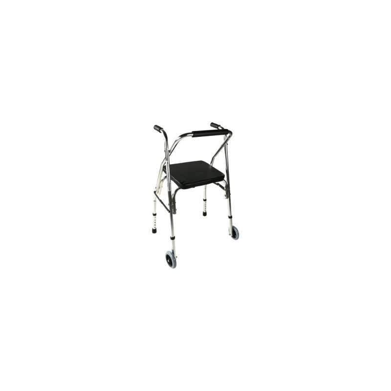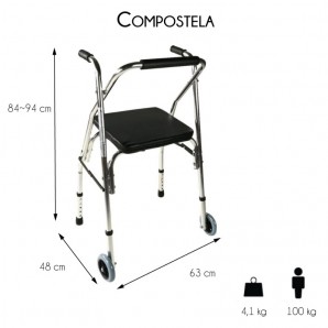 Andador para ancianos | Aluminio | Plegable | Asiento y respaldo | 2 ruedas | Plateado | Compostela | Mobiclinic