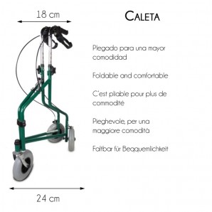 Andador para ancianos | Plegable | Freno en manetas | 3 ruedas | Cesta | Verde | Caleta | Mobiclinic