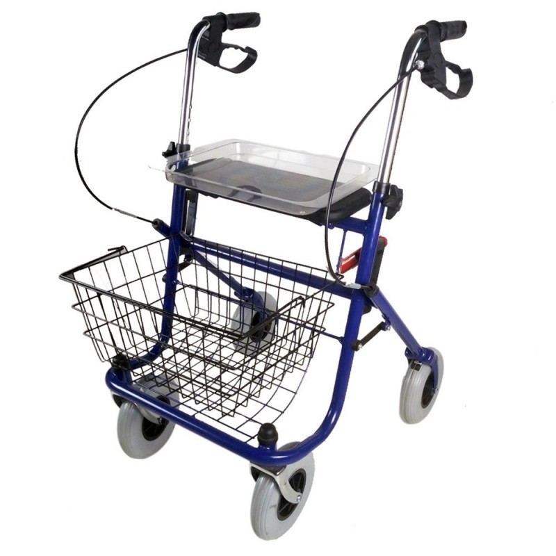 Andador para ancianos | Plegable | Freno en manetas | Asiento | 4 ruedas | Cesta | Azul | Victoria | Mobiclinic