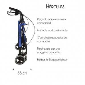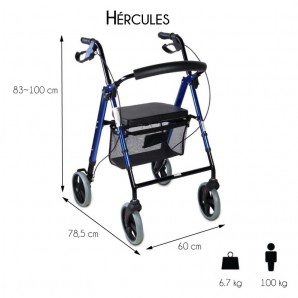 Andador para ancianos TOP | Aluminio | Plegable | Frenos en manetas | Asiento y respaldo | 4 ruedas | Hércules | Mobiclinic