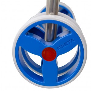 El modelo de andador ortopédico de Forta está fabricado en aluminio, posee dos ruedas delanteras dobles, un asiento confortable que permite el descanso a los adultos y está preparado para poder colocarle tanto ruedas traseras como una cesta de tela. Este andador ya lleva los taladros (orificios) necesarios para colocarle un kit de ruedas traseras, con lo cual, no se necesitará perforar el tubo, teniendo simplemente que atornillar las fijaciones de las ruedas a las patas del andador usando los tornillos y tuercas que se proporcionan con el kit. Gracias a la estructura del andador, la cesta de tela se puede colocar perfectamente. La estructura del andador ortopédico está compuesta por aluminio, pintado en su superficie y puños con forma anatómica que permiten un buen agarre y confort. Materiales de primera calidad que aportan valor, seguridad y resistencia al andador articulado para ancianos.