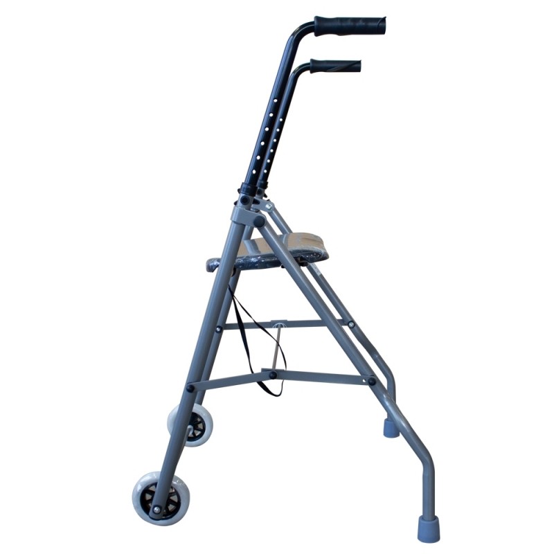 Andador de adulto plegable con dos ruedas y asiento acolchado muy ligero
