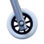 El andador de dos ruedas con asiento de PVC acolchado dispone de puños anatómicos y ajustables en altura. Resulta fácil de plegar gracias a un eje central.