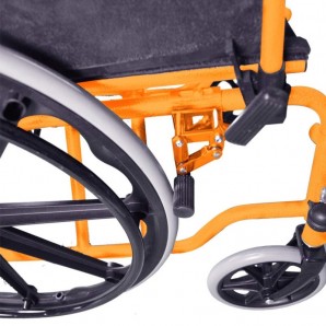 Además, los reposapiés abatibles y desmontables, permiten que la posición de pies y piernas sea la óptima, evitando úlceras por presión, haciéndola una silla de ruedas para ancianos de gran calidad.