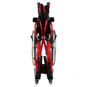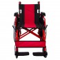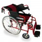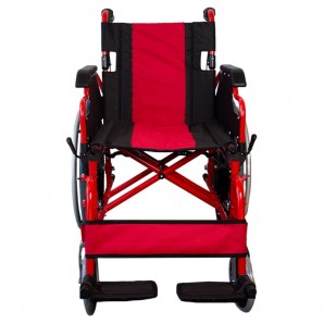 una silla de ruedas manual en la que puedes confiar tanto tu comodidad como tu seguridad, y asegurar el confort del acompañante. Esta silla para ancianos está fabricada en aluminio de alta resistencia con respaldo fijo de color rojo y negro.