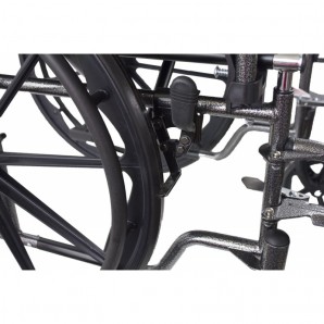 FÁCIL DE USAR: los reposapiés de esta silla ruedas se extraen fácilmente. Son regulables en altura para adaptarse a la estatura del usuario.
