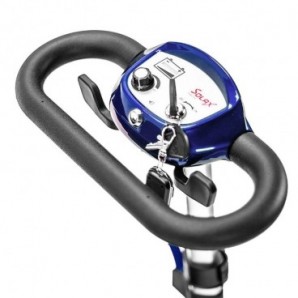 SEGURIDAD: este scooter eléctrico minusválidos dispone de elementos para garantizar la seguridad: timón reforzado con bloqueo de liberación rápida, freno electromagnético que le detiene al soltar el acelerador y control de velocidad.
