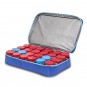Cuatro compartimentos isotérmicos extraíbles, los cuales cuantan todos con asa individual, identificador, esponja para absorver posibles derrames y bolsillos para