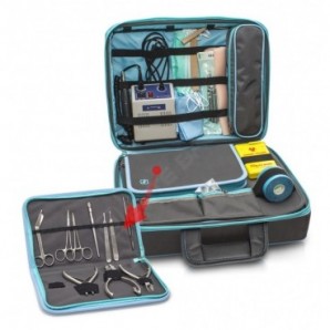Maletín multidisciplinar de gran capacidad que se adapta perfectamente a las necesidades de profesionales de atención domiciliaria. Dispone de un espacio destino para micromotor y estuches para el material específico. Los compartimentos que ofrecen son diversos cada uno más útil que el anterior, preparado para instrumental vario tanto de podólogos como odontólogos, pues el intrumental parecido entre ambos hace de este maletín apto para ambos. Contiene una solapa central diferencia los dos espacios de trabajo: la zona de trabajo con sujeción para micromotor y la zona de curas. Medidas: 42 x 32 x 16 cm Capacidad: 23,55 L Peso: 3.20 kg Material: 900D Poliéster. Lavable Color: Gris Contenido máximo recomendado: 5 kg