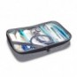 Cuenta con 5 compartimentos extraíbles con frontal transparente, asa y divisores internos.