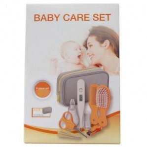 Cuenta con un termómetro digital, un peine, un cepillo de hebras suaves, unas tijeras de punta redonda, un cortaúñas, un aspirador nasal, lima de uñas y un dedal cepillo de dientes. Todos los artículos son de la máxima calidad y están diseñados para los cuidados del bebé y proteger a los niños.
