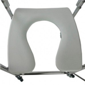 MÁXIMO CONFORT: esta silla sobre inodoro sin cubeta tiene un amplio asiento, respaldo adaptable y reposabrazos de color blanco muy cómodos