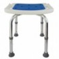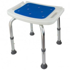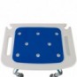 Escalón fabricado en aluminio anodizado y plástico reforzado para entrar y salir de la bañera. Cuenta con un asiento acolchado y agujeros de drenaje para evacuar el agua.