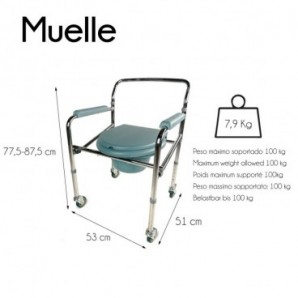 La silla de ruedas con inodoro Muelle es adecuada para personas con complicaciones para acceder al aseo o que tienen problemas de movilidad. Este inodoro para discapacitados les ayudará en su día a día y les aliviará en momentos tan importantes como ir al baño.