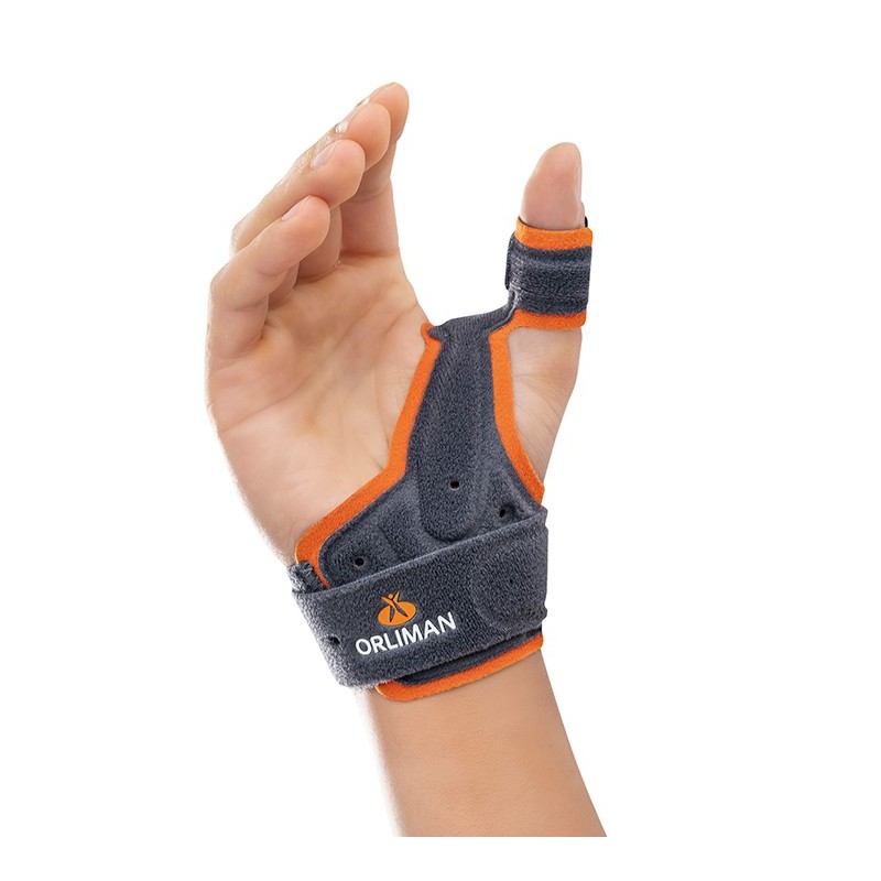 - Ortesis inmovilizadora de pulgar, restringiendo su movimiento de abducción