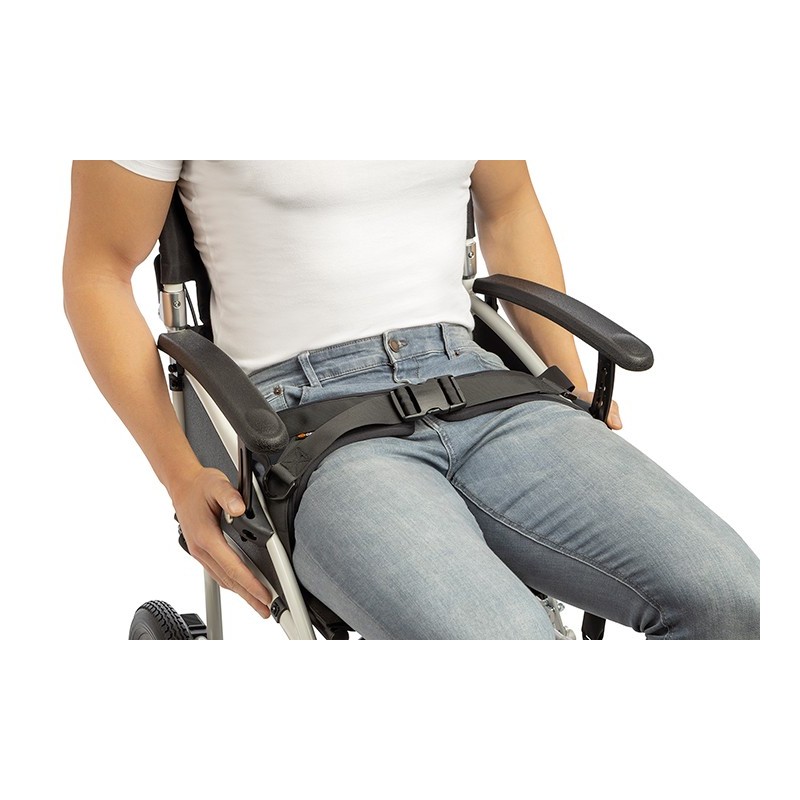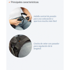 Cinturón pélvico que permite la sujeción del paciente con tendencia a deslizarse en el asiento.