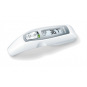El manejo es muy fácil: el dispositivo se enciende con sólo pulsar un botón. Una vez terminado el proceso de medición, una voz femenina amistosa y muy fácil de entender te dice, por ejemplo: "Tu temperatura corporal es de 37,5°". El último valor medido se almacena y puede ser llamado una y otra vez. Por supuesto, este también es un método de medición sin problemas para los niños, porque la voz agradable suena después de un corto tiempo!