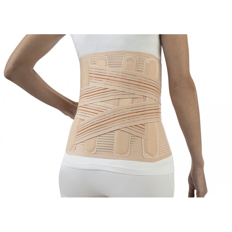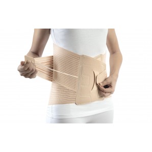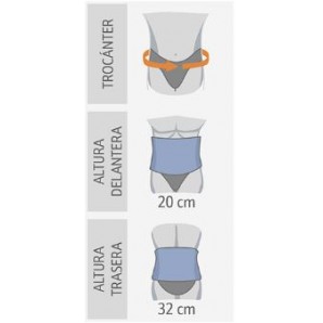 Faja alta de sujeción sacrolumbar reforzada con ballenas posteriores que proporcionan un gran apoyo lumbar.