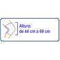 - Sistema de prolongación mediante barras barras telescópicas y clips de fricción para fijar la barra a la altura deseada de un mínimo de 44 cm hasta un máximo de 69 cm