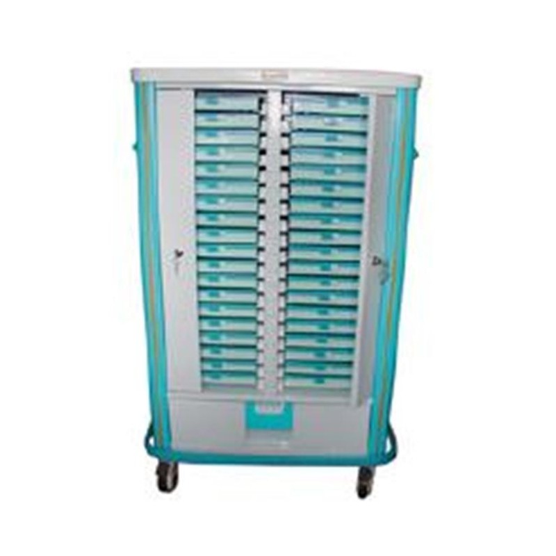 Carro de medicación de hasta 38 bandejas de capacidad.